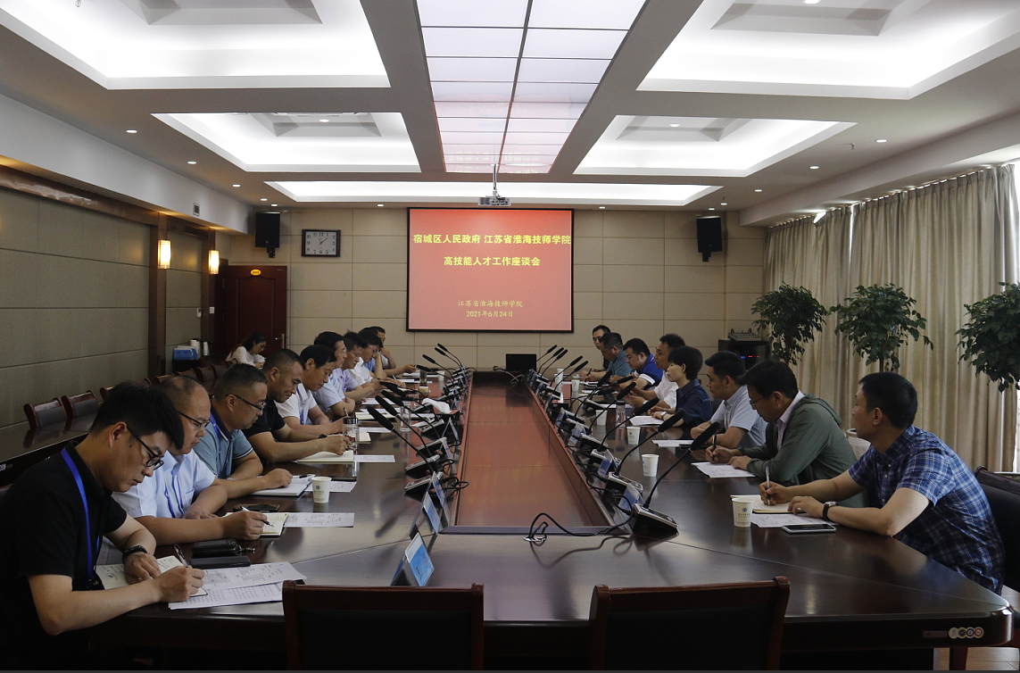 期间,王丰介绍了宿城区经济社会的发展状况,该区相关部门负责人分别就人才需求和人才培养等方面的情况进行了深入分析。张兵营介绍了学院的发展情况,重点从服务产业、服务学生、服务企业等方面总结了学院在服务地方经济发展中所取得的成绩。
