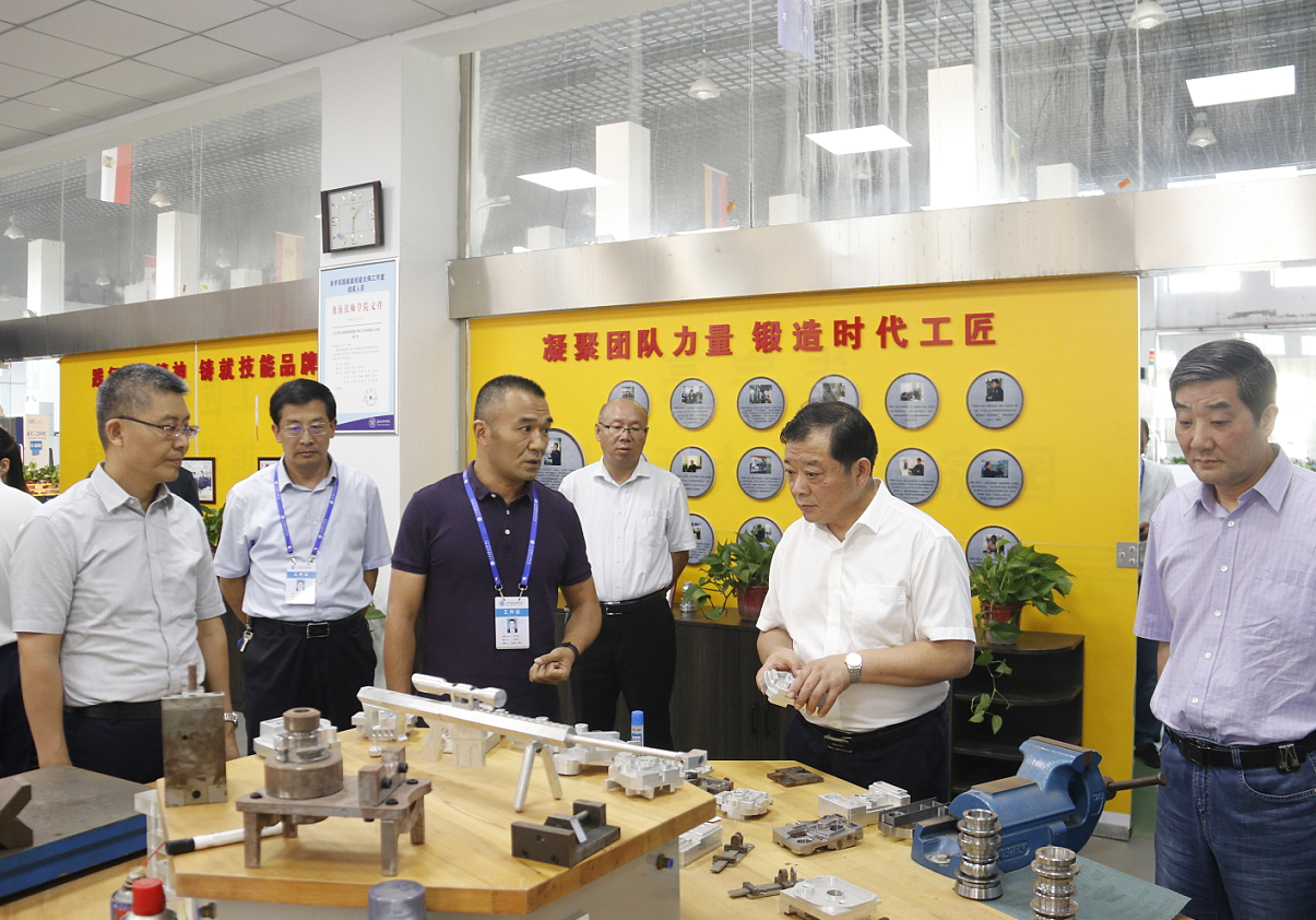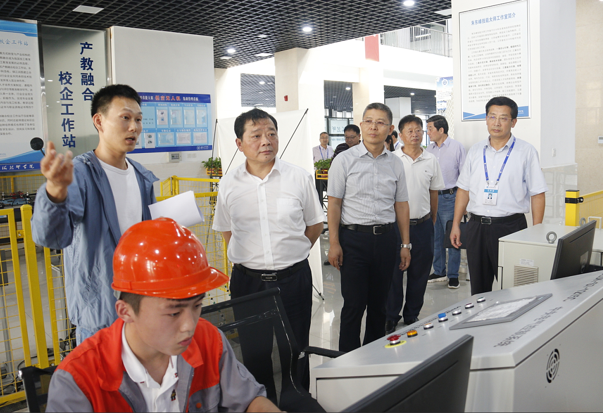 江泽清一行先后参观了学院校史馆、图书馆、高铁乘务实训中心、电商实训中心、天岗锣鼓特色班、烙书烙画工作室、泥塑工作室、剪纸艺术工作室、数控加工实训中心、机械加工实训中心、国家级技能大师工作室、安全考核基地、汽车喷漆国赛集训基地、机器人实训中心等地,对我院优美的校园环境、高端的硬件设施、先进的教学理念、鲜明的办学特色给予高度赞扬。