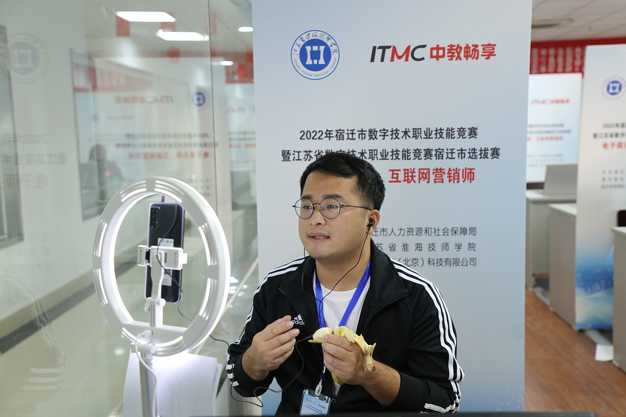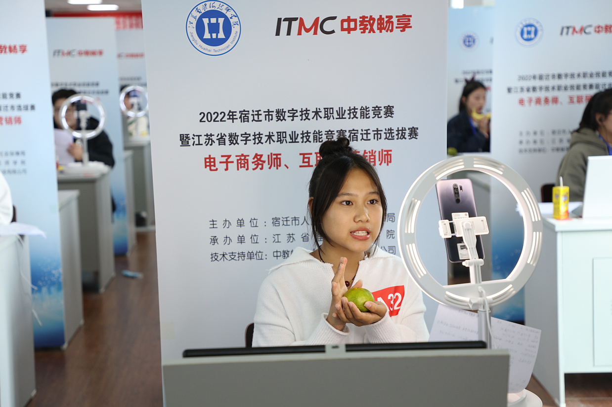 大赛设置电子商务师、互联网营销师两个项目,分别设有职工组、学生组两个竞赛组别,均为单人赛,分为理论和实操两个部分,分别占比赛总成绩的20%和80%,各赛项各组别前5名选手将代表宿迁市参加全省总决赛。本次竞赛内容紧扣当前数字化发展背景下的人才需求,电子商务师主要考察选手的直播营销能力、视觉设计能力、网络营销能力、数据分析能力、站内推广能力以及创新创业能力,互联网营销师主要考察选手市场信息分析、直播规划、脚本策划、创建直播、直播装修、直播推广、直播售卖、直播互动、直播复盘、图文推广、视频推广等能力。