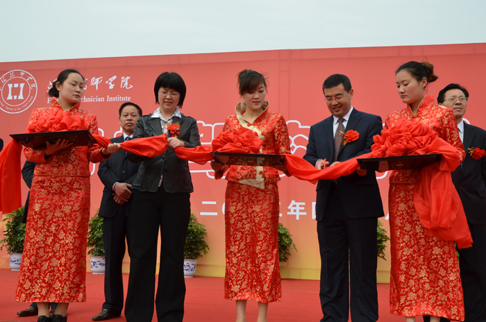 4月18日上午,我院举行吉祥驾校剪彩仪式,市人力资源和社会保障局副局长夏雪梅出席仪式并和学院院长庞志勤共同为吉祥驾校剪彩。
