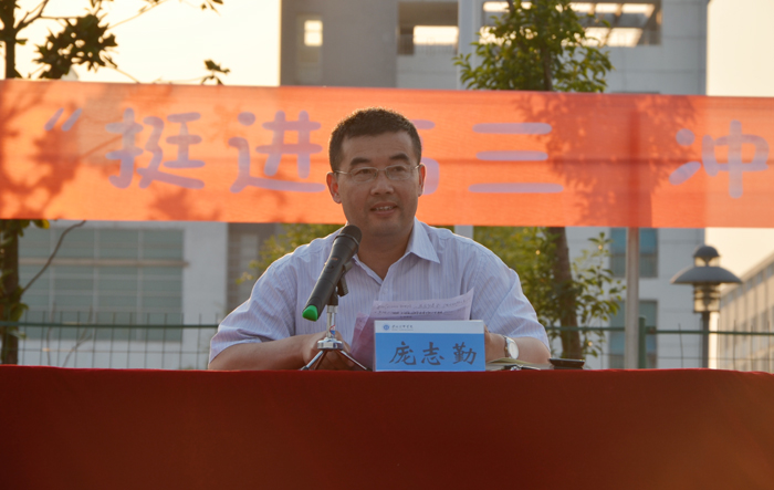 誓师大会上,副院长王慎南宣读了优秀学生会干部奖名单并为获奖学干颁奖,院长庞志勤作了重要誓师动员讲话,号召同学们增强信心,抓住机遇,拼好这最后的二百天。他对大家深情寄语:调整心态、奋力一搏;坚持到底、拼到最后。每一位老师、每一位同学,在这最后的200多天里,要以超人的毅力坚持精心安排好每一天,兢兢业业地做好每一件事,扎扎实实地学好每一个重要的知识点。二百天后的人生重大选择,永远值得我们在这有限的时间里,去发奋一搏,拼出精彩!
