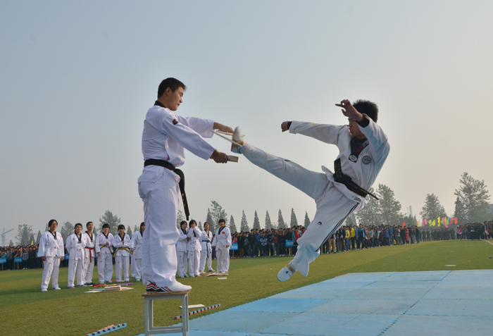 接着,运动员、裁判员代表宣誓。随后,进行了精彩的跆拳道、乐队、舞狮和广播体操表演。
