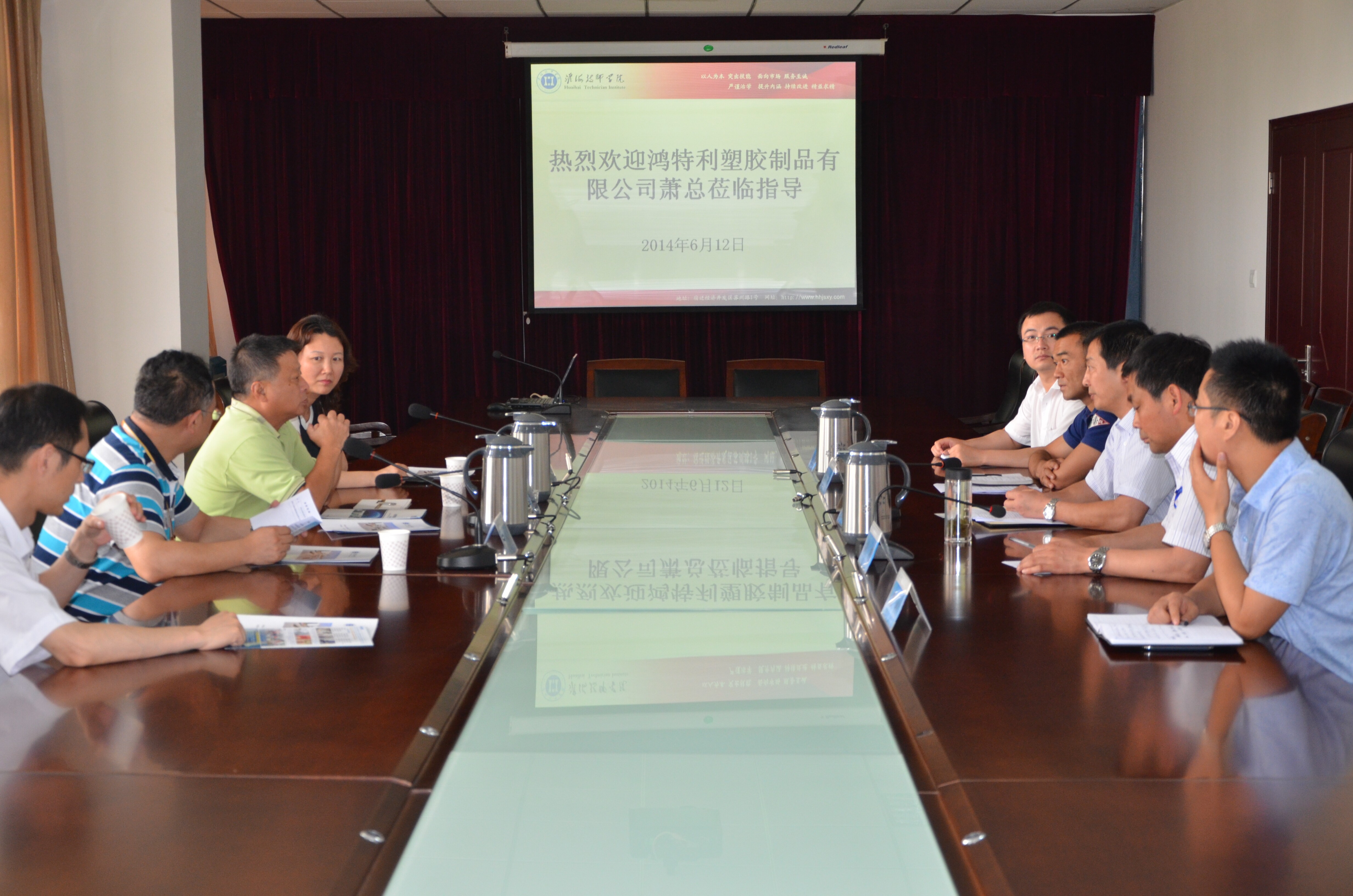 张兵营院长向来宾介绍了学院的基本情况、专业建设和校企合作情况,重点介绍了学院的“三对接”(专业设置与产业需求对接、课程内容与职业标准对接、教学过程与生产过程对接)和“双证书”(学历证书和职业资格证书)制度。双方就共建实训基地、共享人力资源、教师下企业锻炼、学生顶岗实习等校企合作内容进行了深入交谈,达成了初步意向。