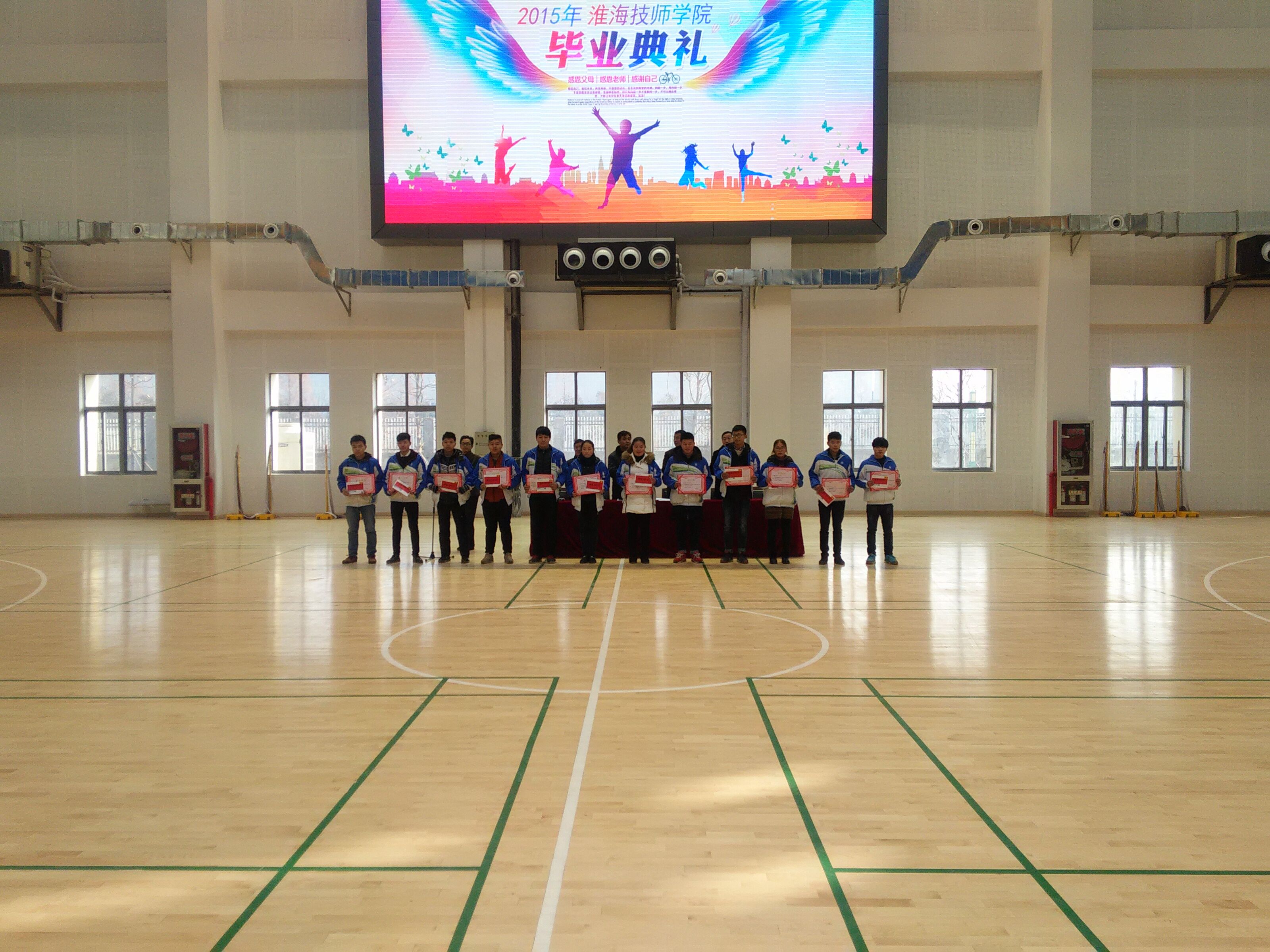 12月29日上午,我院在学院新建体育馆为学院12级、13级顶岗实习学生举行了主题为“情系淮海、出彩未来的”毕业典礼,学院领导班子、系部领导、班主任老师以及部分12级、13级学生出席了毕业典礼。