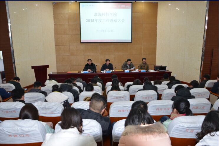 2016年1月24日上午,淮海技师学院在第二报告厅召开2015年度工作总结大会,会议由学院副院长王治主持,全体教职工参加会议。