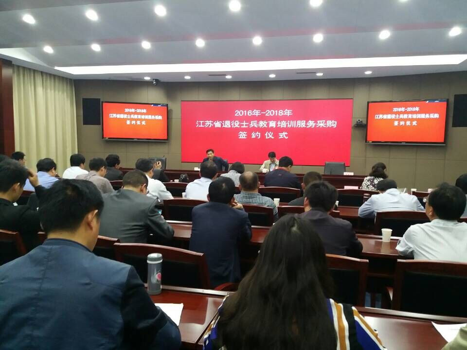 近日,我院代表赴南京参加2016年至2018年退役士兵职业教育培训中标学校签约仪式。本次共有退役士兵中、高级职业技能培训13个重点专业,29所学校中标,中标结果公式和质疑期已满。各中标机构代表于4月22日下午抵达南京参加签约仪式。培训处徐明代表学院参加了此次签约仪式。