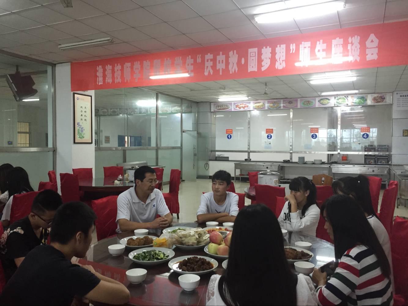 9月15日是中国的传统佳节——中秋节,每逢佳节倍思亲。由于部分学生离家太远,无法回家和父母团圆,留在了学院过节。当天中午,学工处、后勤处和各系部一起组织留校学生80余人举行“庆中秋·圆梦想”师生座谈会,共度中秋佳节。 张兵营院长来到餐厅,亲切看望慰问留校师生,向他们带去了中秋节的问候和祝福。