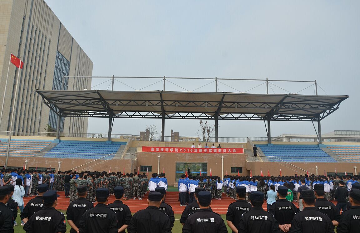 9月26日上午,我院在田径运动场隆重举行2016级新生军训动员大会。我院党委委员、副院长王治、分管同志胡柯,以及承训部队宿豫区公安局巡特警支队长任怀于,学院相关系部、处室负责人、新生班主任、军训教官及2016级全体新生参加了动员大会。大会由分管同志庄昌东主持。