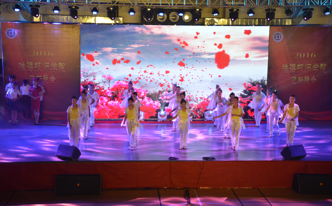 晚会中,舞台大屏幕上还播放了记录着各系部学生们学习、生活及历练的视频短片,每个精彩瞬间都燃起了同学们对走进淮海技师学院以来点点滴滴的回忆。
