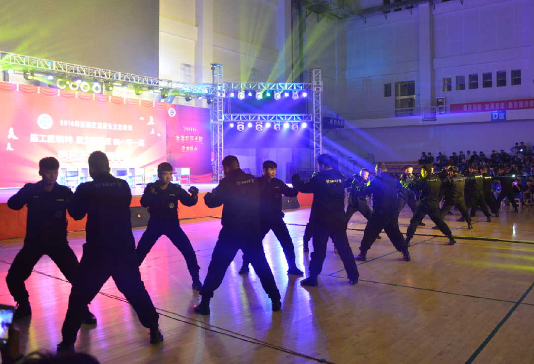 整场节目编排注重“贴近学生”,突出“寓教于乐”,艺术熏陶与思想教育相融,生活演绎与价值引领互彰,紧扣时代主题,彰显青春正能量。军训教官们的《军体拳表演》、傣族舞《彩云之南》迅速引爆全场观众热情,同学们被台上的青春与活力所感染,时而举臂高呼,时而低吟浅咏,沉浸在欢乐与激情的海洋中。相声《满腹经纶》语言诙谐幽默,唱段紧凑明快,贴近学生实际的话题引起观众共鸣,现场不时报以热烈的掌声和欢呼声。笛子合奏《牧民新歌》似一幅山水画卷,如一缕清风拂面。舞蹈《帝都》以优美曼妙的走姿,展现了当代学生的青春风采。彰显青春风采的情景剧《开学第一课》将活力与动感相互融合,更是青春与激情完美碰撞。歌伴舞《家在心里》蕴含充沛情感,铿锵自信,绽放着青春与梦想的光芒。