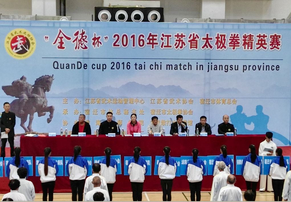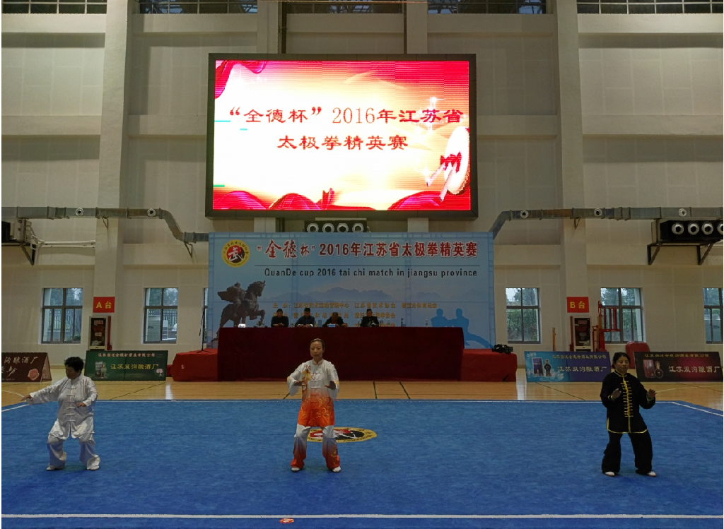 10月15日,由我院承办的首届“全德杯”2016江苏省太极拳精英赛在学院体育馆盛大开幕。本次比赛为期2天,汇集省内37支代表队参赛,安徽宿州代表队也派出强大阵容参与其中。不同门派的近600名太极运动健儿在此展示身手,切磋技艺,竞争荣誉。