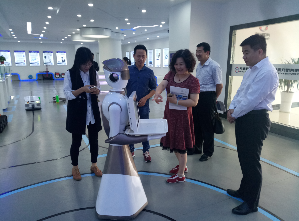 考察组在研究院总经理徐俊的带领下,参观了该院的成果展览室,观摩了机器人表演,并就工业机器人现状、发展趋势以及人才需求进行了深入细致的交流。