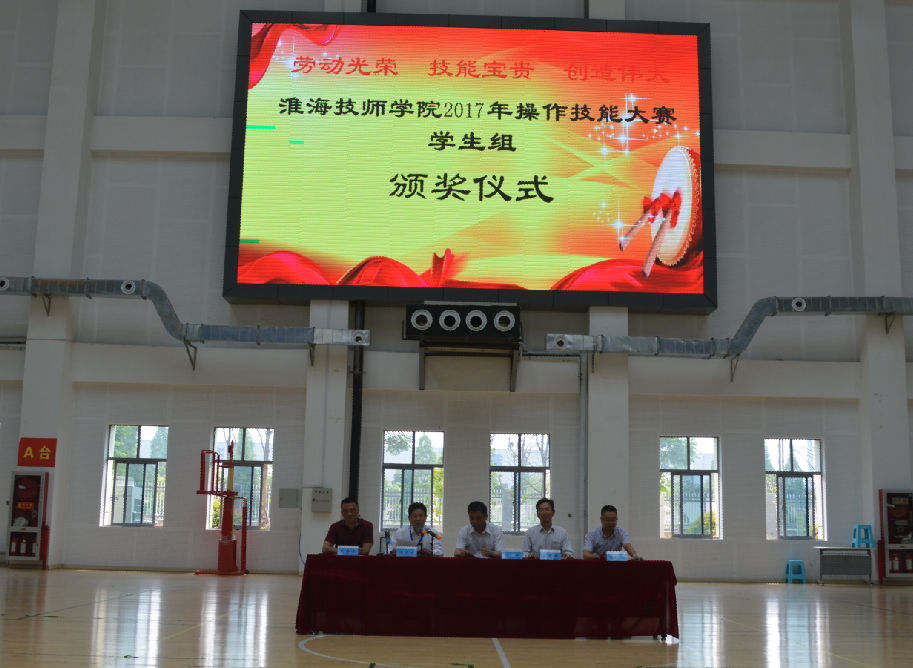 6月8日上午,我院在体育馆隆重举行2017年操作技能大赛学生组颁奖仪式。院领导、各系部负责人及全院师生参加了仪式。