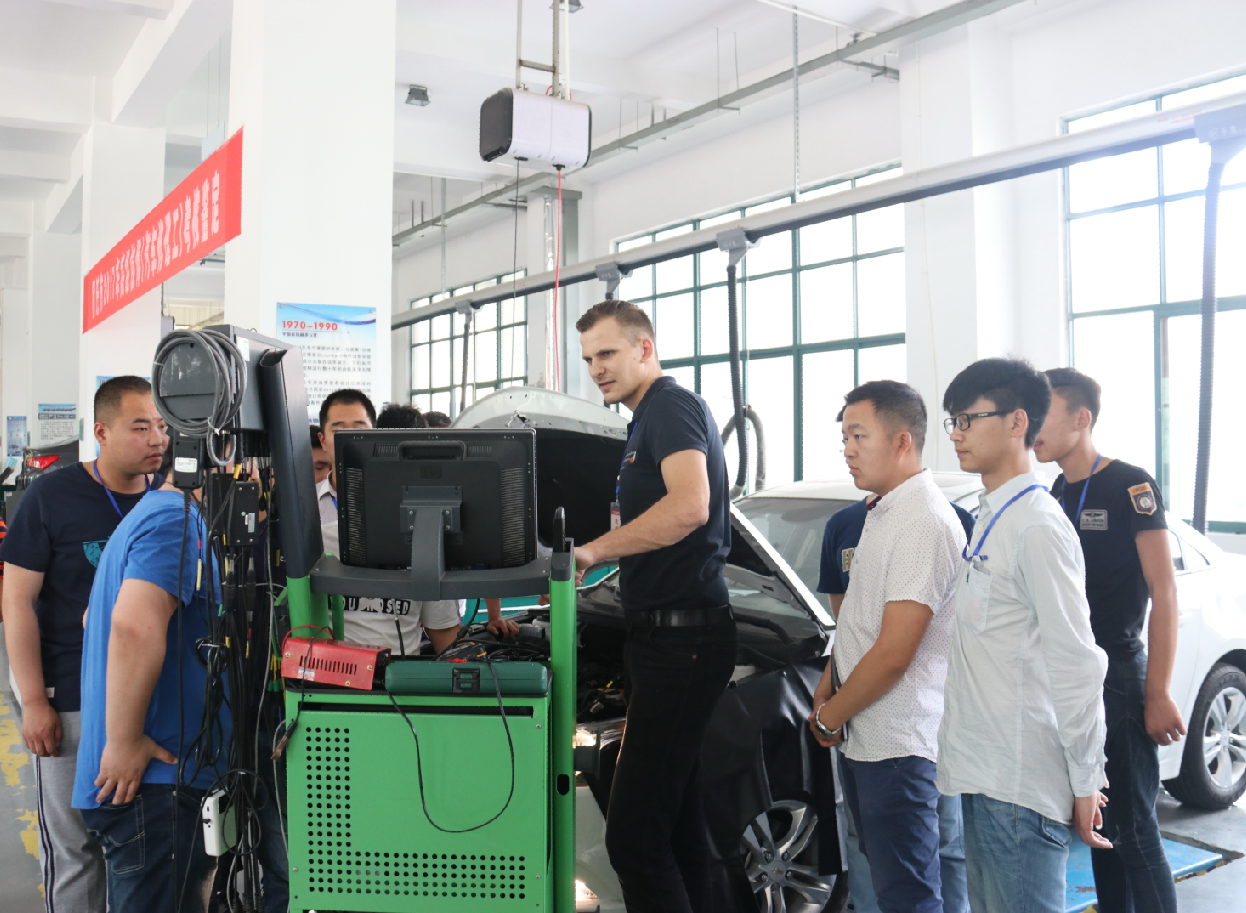 10月9日上午,我市第四期中德职教合作“金蓝领”高技能人才培训班在我院正式开班。本次培训设有汽车维修和维修电工两个工种,培训讲师分别由来自德国埃尔福特市手工业行会(HWK)的工业大师菲利普·舍勒及德国埃尔福特教育培训中心(EBZ)的机电一体化高级讲师英格·罗森布拉特担任。我市公交公司、双星彩塑、洋河酒厂、箭鹿纺织等知名企业的技术骨干及相关职校的优秀教师共计50人参培。