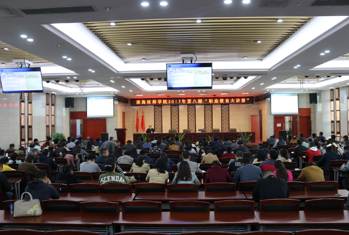 10月25日下午,我院本年度“职业教育大讲堂”系列讲座第八期在行知楼十二楼会议室开讲。本期大讲堂由学院中外合作办公室负责人汪啸进行“中德合作办学”专题讲座。讲座由院委会成员、党政办公室主任朱宇亮主持,院领导及全体教职工参加。