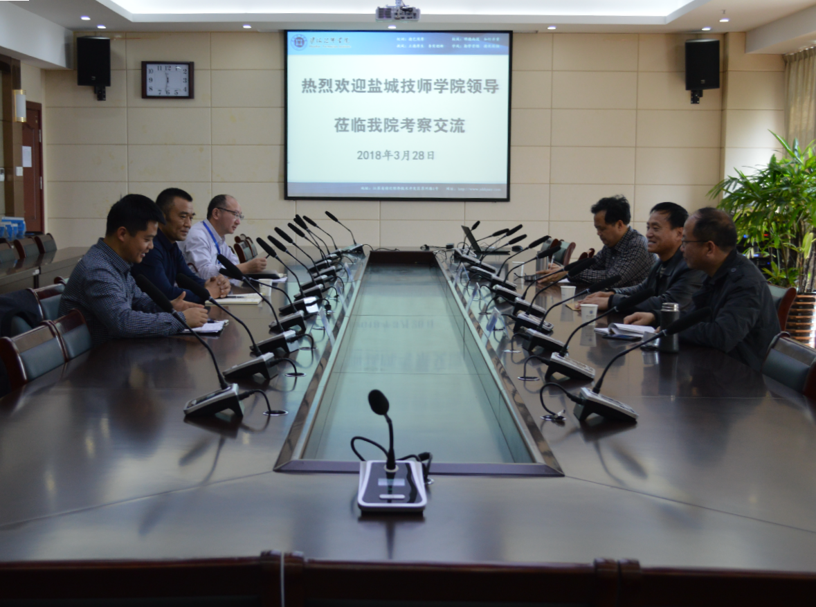 3月28日上午,盐城技师学院环境工程学院副院长颜廷良一行三人到我院考察交流。院委委员、党政办公室主任朱宇亮,教务处负责人孙永斌、商贸服务系负责人梁春阳等领导热情接待了颜廷良一行。
