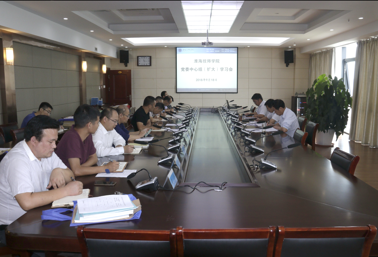 9月18日上午,我院在行知楼九楼会议室召开党委中心组(扩大)专题学习会。院党委领导班子、院委委员、各支部书记参加会议。院党委副书记、副院长张兵营主持会议并作总结讲话。