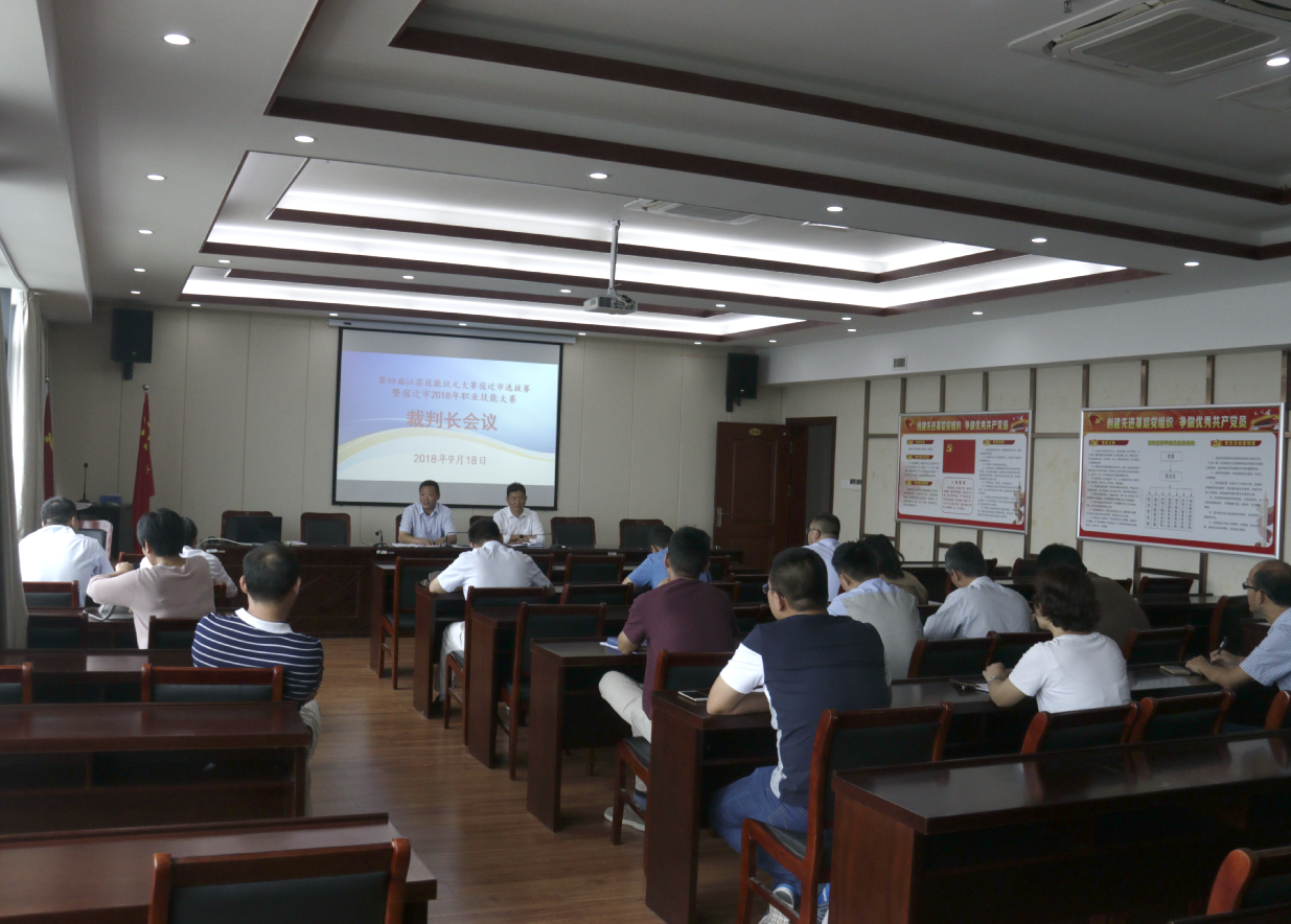 根据第四届江苏技能状元大赛宿迁选拔赛暨宿迁市2018年职业技能大赛赛程安排,为确保比赛正常进行,9月18日上午,大赛裁判长会议在我院召开。市人社局职业能力建设处、市考试鉴定中心相关负责人及全体裁判长参加会议。