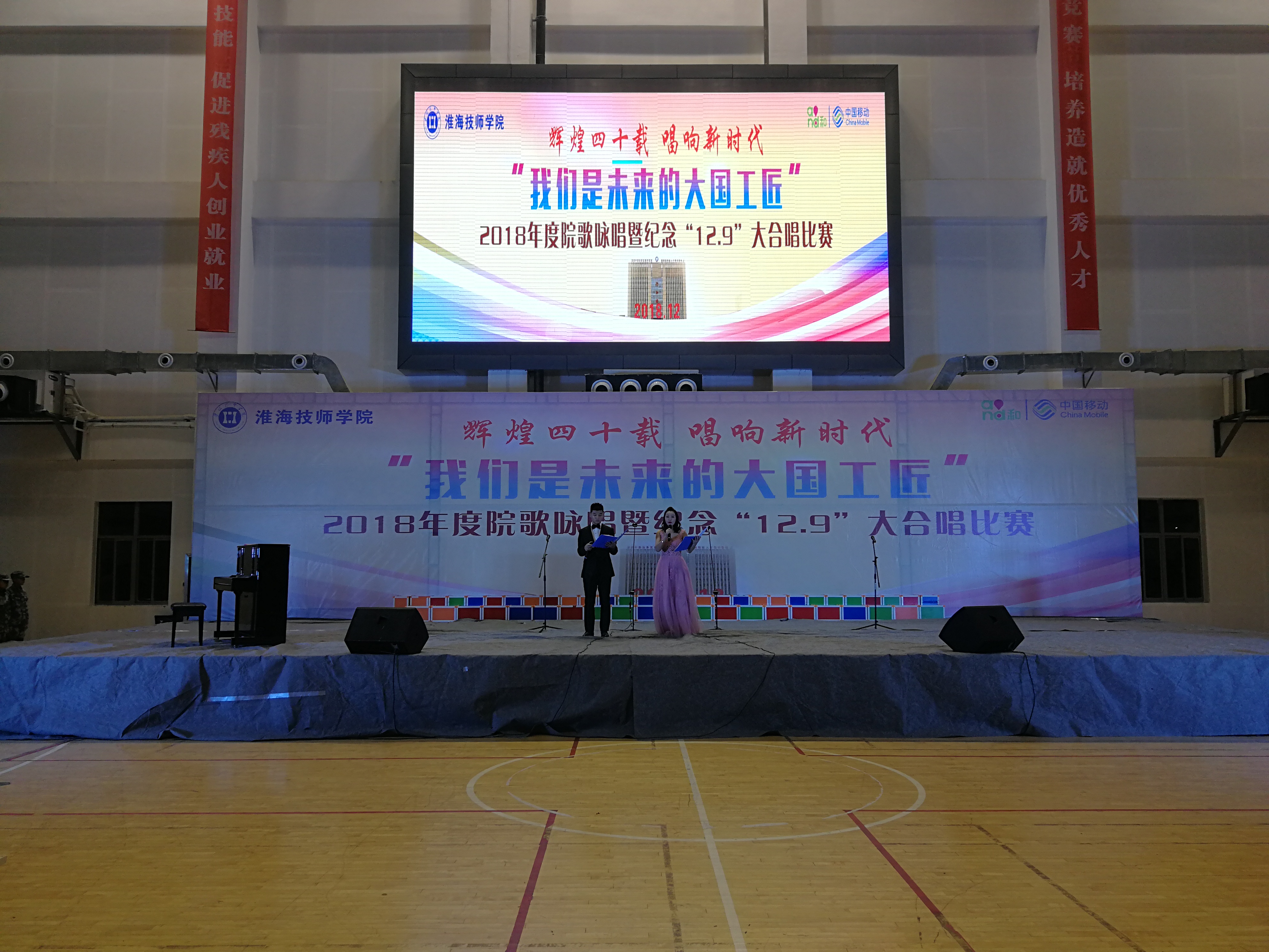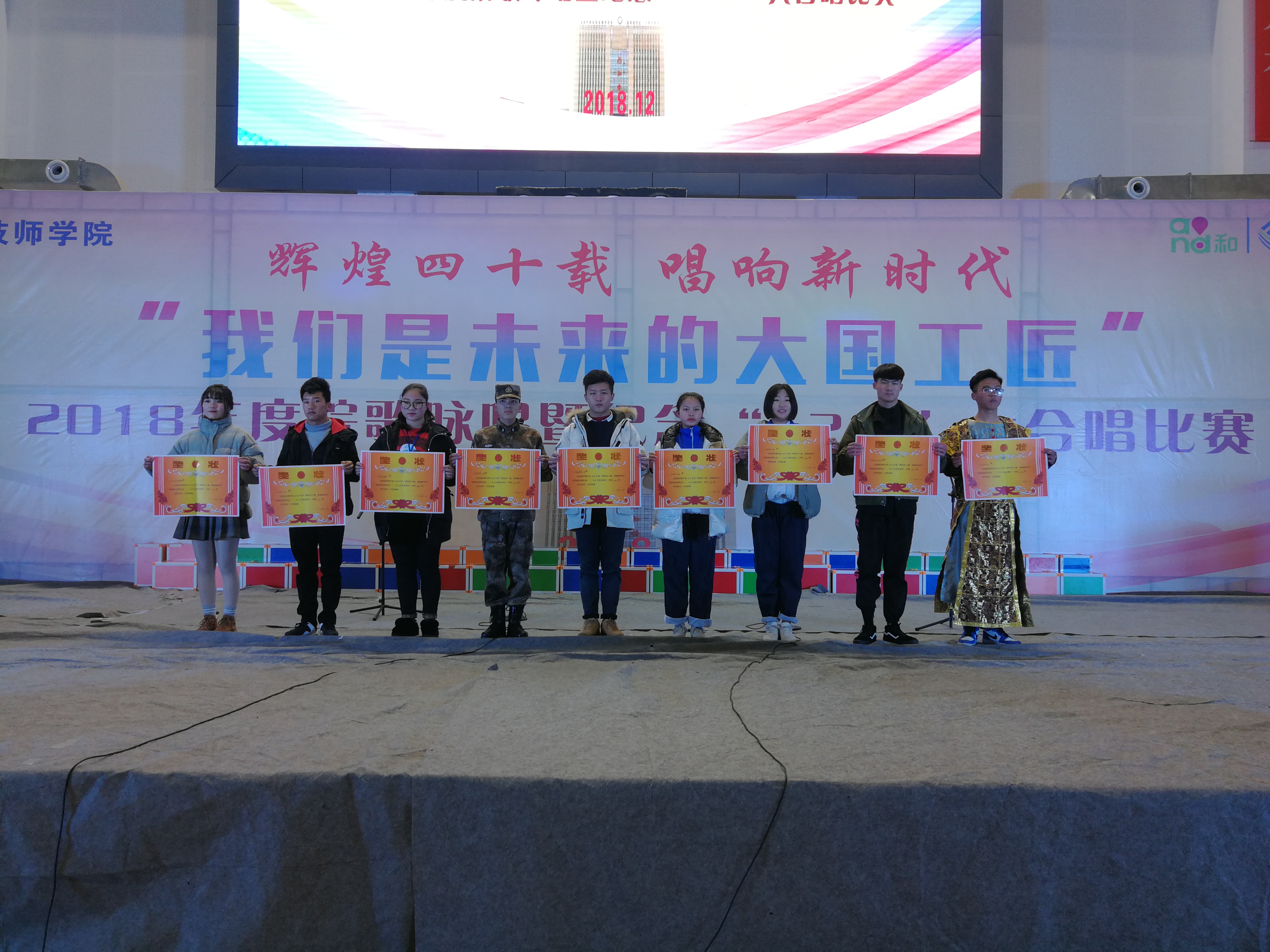 为纪念改革开放40周年、一二·九运动爆发83周年,并进一步丰富校园文化生活,集中展现我院青年学生爱国、爱校、热爱社会主义的价值追求和深厚情感,12月11日晚,我院在院体育馆隆重举行“我们是未来的大国工匠”院歌咏唱暨纪念一二·九大合唱比赛。来自各系部在校班级组成的10个参赛队参加了院决赛。院领导及全体师生一起观看了整场比赛。