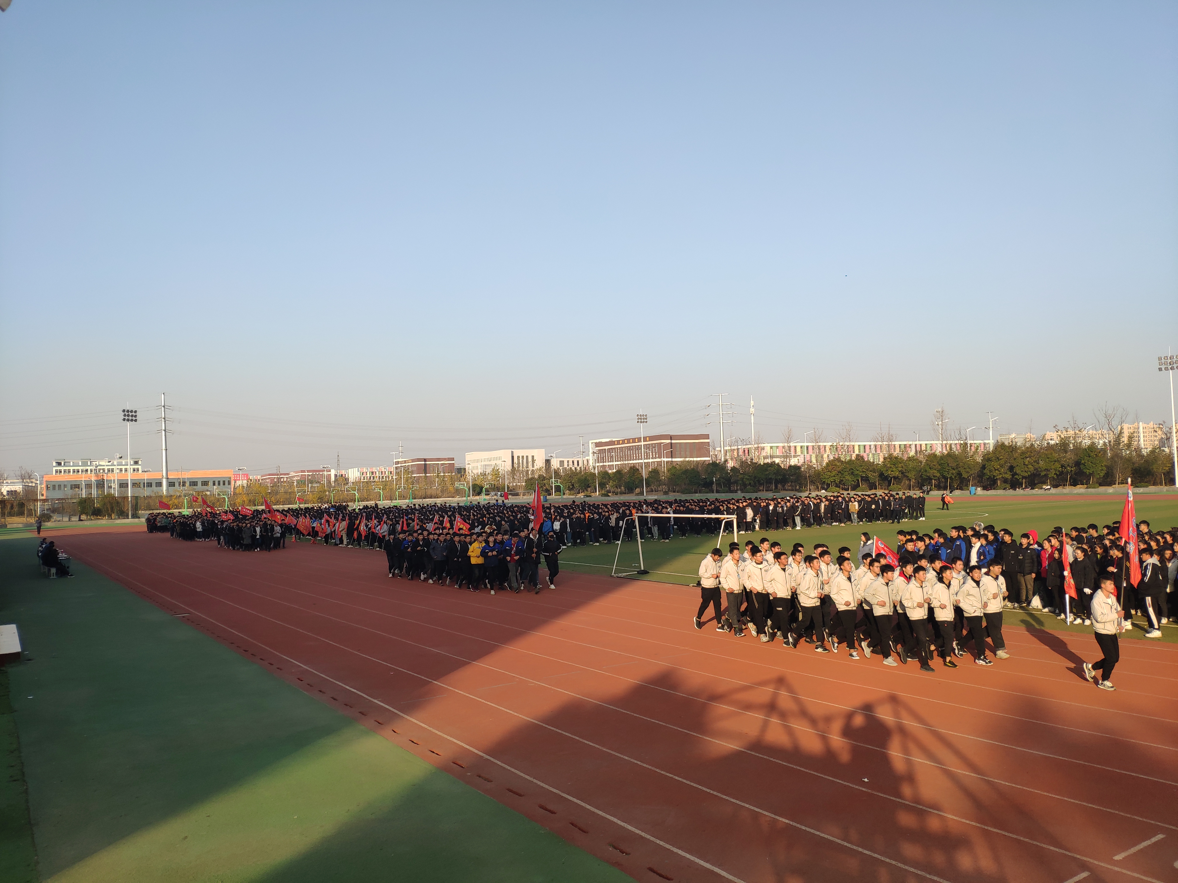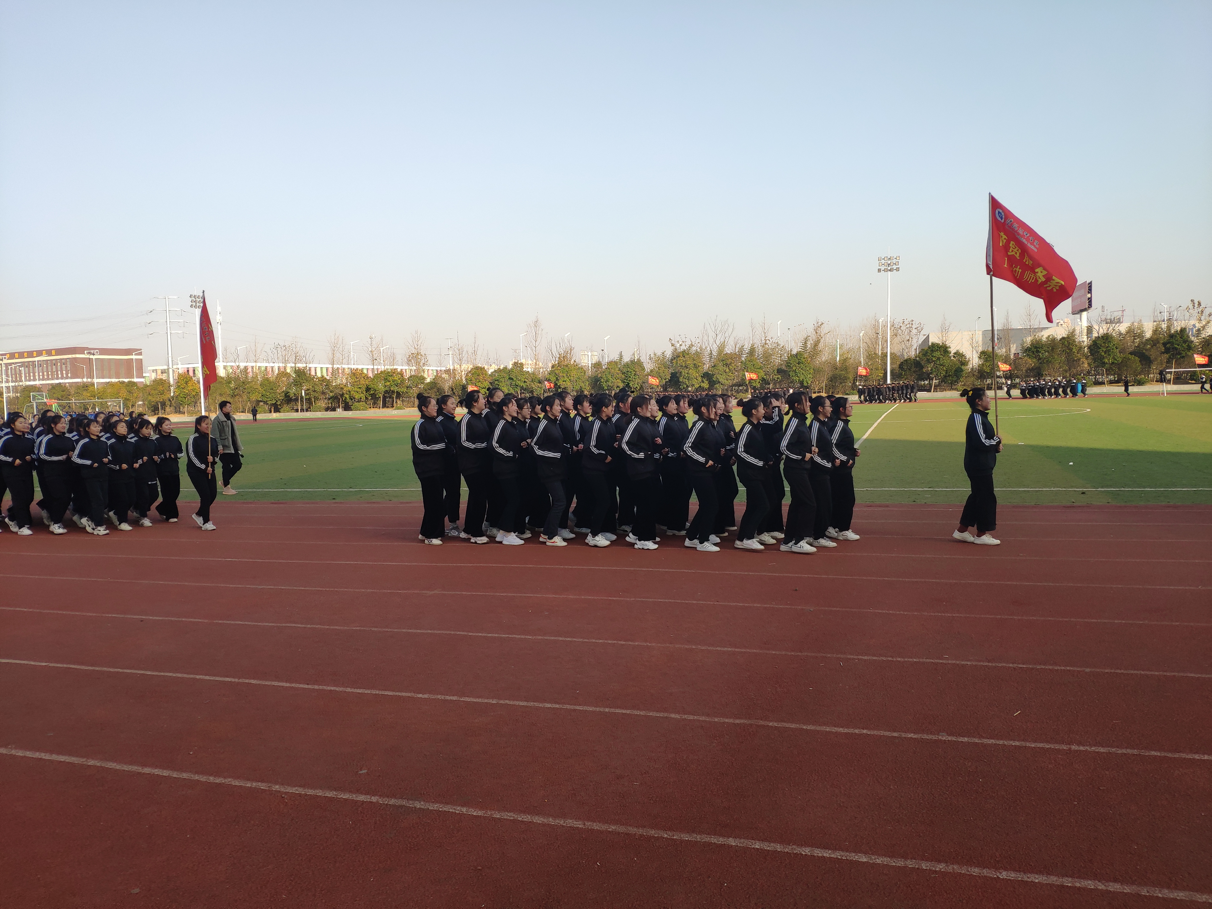 比赛共分两个部分进行,分别为集体展示和优秀班级决赛。虽然寒风凛冽,但广大师生群情激昂,不畏严寒,充分展示出了奋勇拼搏、永争第一的精神。运动场上,同学们在各班班旗的指引下,意气风发、斗志昂扬,喊着响亮的号令,迈着整齐的步伐,谱写着在校园文化建设中师生同心、坚定意志、顽强拼搏、共创辉煌的美好诗篇。