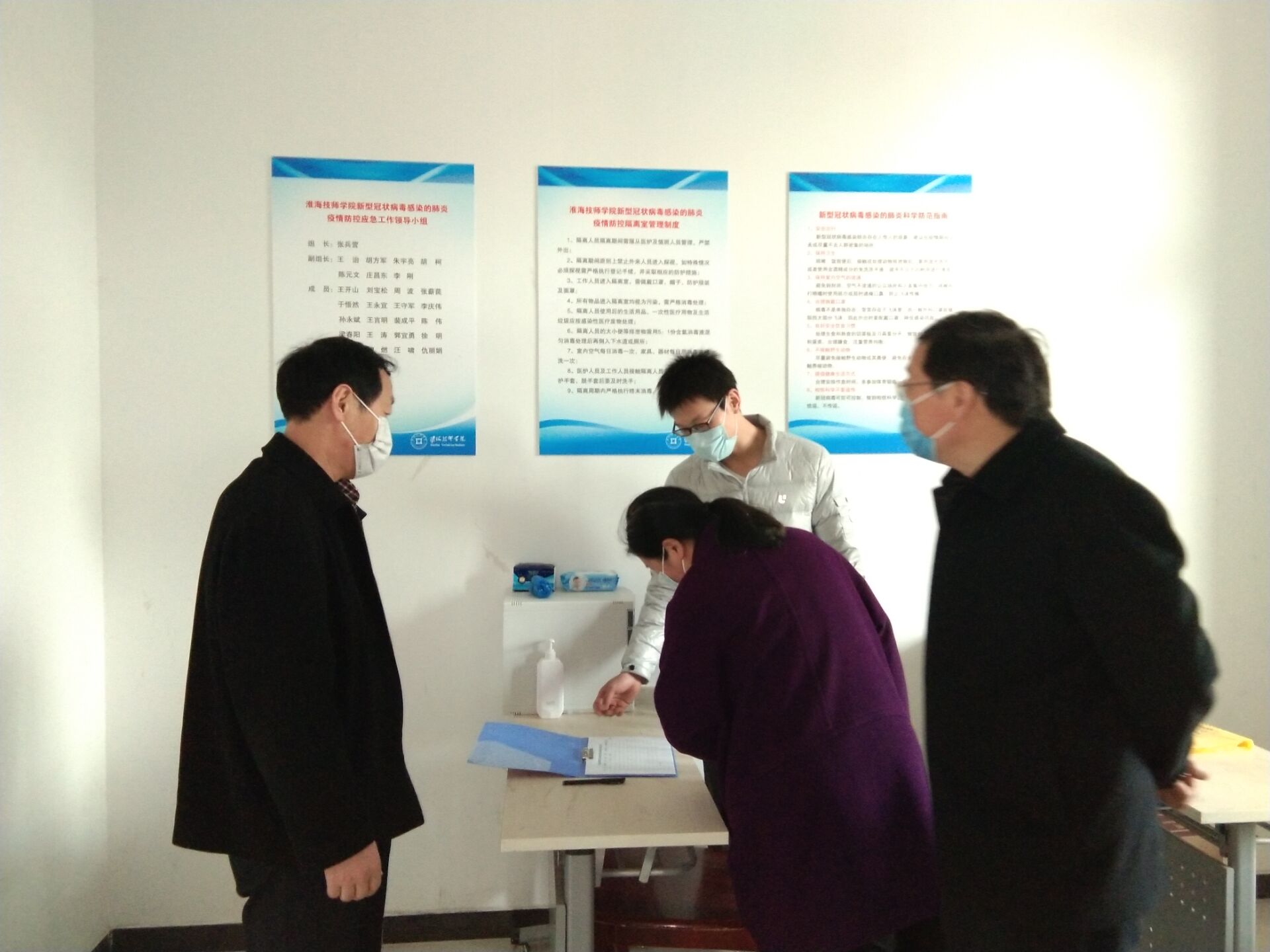 督查组组长、市人社局职业能力建设处处长陈金全对我院前期认真落实国家省、市和市人社局对疫情防控各项工作要求表示了充分肯定,认为学院高度重视疫情防控工作,认真贯彻上级疫情防控总体部署,坚持把师生生命安全和身体健康放在第一位,组织领导有力,防控措施落实到位,各项防控工作高效有序开展。要求学校进一步按照国家、省、市和市人社局有关疫情防控工作的相关要求,及时研判疫情发展形势,细查摸排师生疫情信息,引导全体师生做好自身防护,扎实有序地做好开学前的各项准备工作。