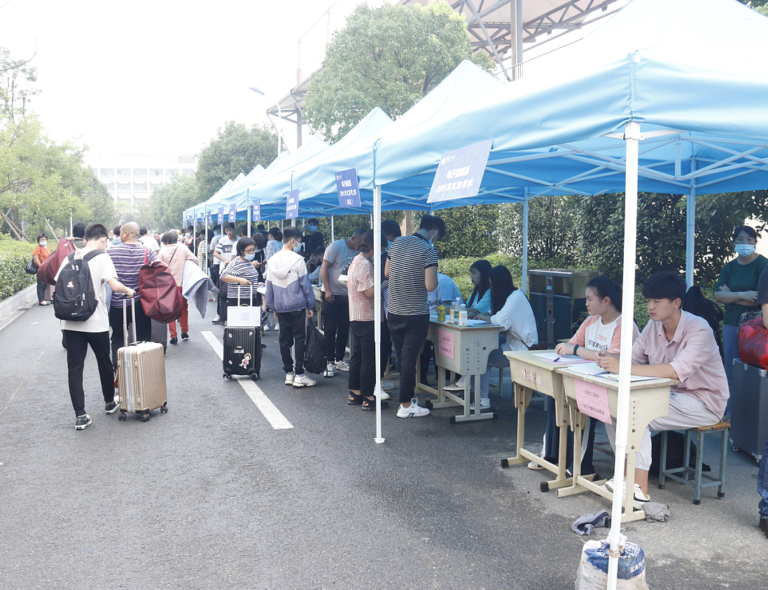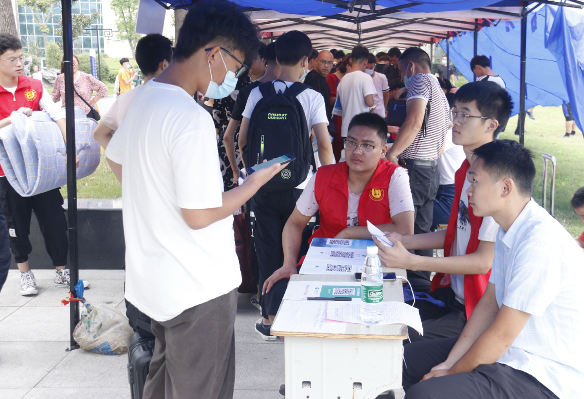 报到开始后,学院严格按照疫情防控要求,进行测温、检查苏康码等,按照“一站式”服务原则,组织学生有秩序地一次性完成报到流程,报到流程一目了然,办理程序大大简化,迎新工作井然有序。