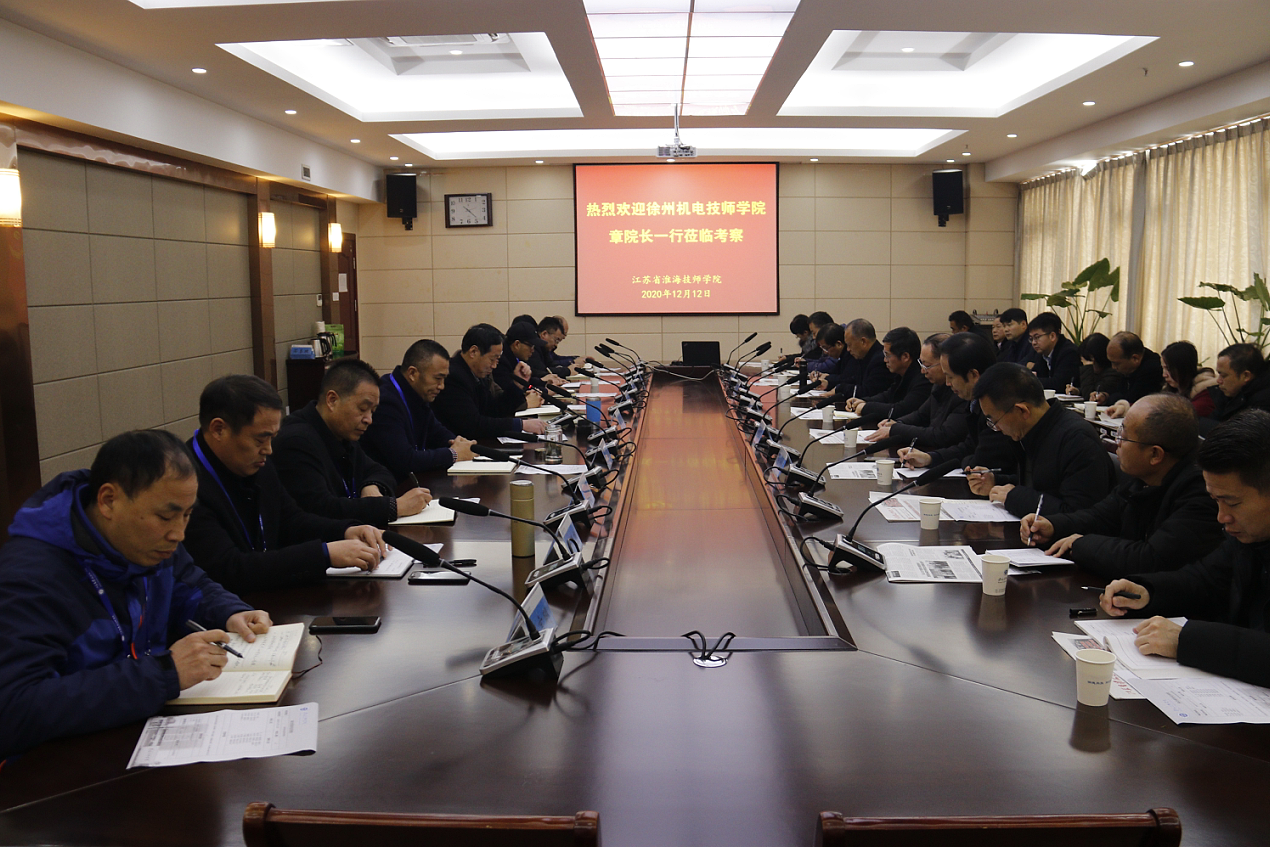 12月12日,徐州机电技师学院院长章结来、党委书记钟诚率该院领导班子、中层干部及骨干教师等一行四十余人到我院参观交流。学院党委委员、副院长王治、纪委书记胡方军、副院长朱宇亮,党政办、教务处、科研处、学工处、后勤处及相关部门负责人参加座谈交流。