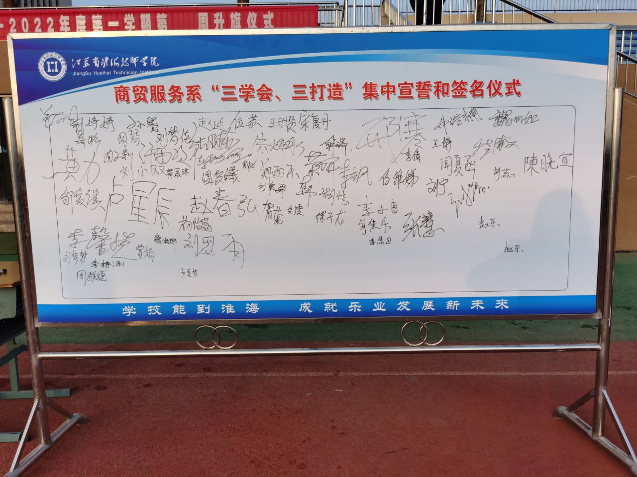 商贸服务系通过集体宣誓与签名的方式,营造出了良好的文明礼仪宣传教育氛围,充分激发全系学生学习“三学会、三打造”的热情,同学们纷纷表示一定要与不良行为彻底诀别,要以文明行为作为自己的行动指南,说文明话,行文明举,做文明事,一展淮海学子风采。