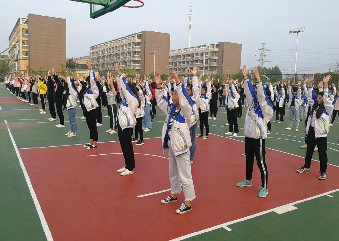 在形象、生动、优美的音乐伴奏下,在老师的示范下,同学们听的认真,学的认真,做的认真。吸气,呼气,放松,享受!学生们乐在其中,享受形体操的乐趣,达到锻炼身体和教育教学的双重统一。