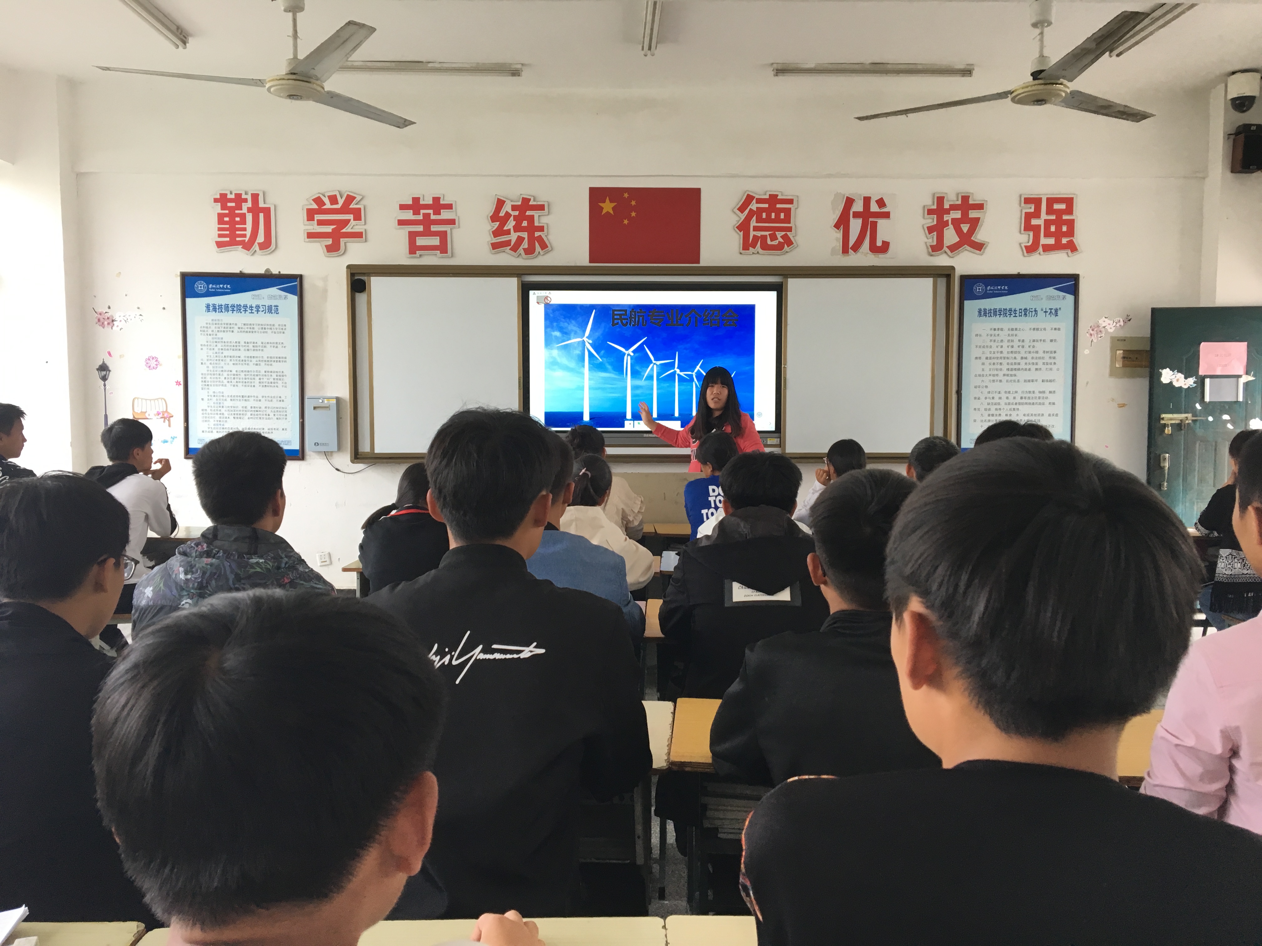 会上,姚娜老师分别从民航专业发展历史、师资力量、培养目标、课程设置、实习实践、专业特色和就业前景等七个方面做出了详细讲解和分析,帮助学生加深对本专业的理解。通过姚老师认真的讲解,学生了解到民航专业分成云计算、金融和空乘三个专业方向,采取3+3的办学模式,通过毕业考试后将获得由徐州安全技术教育学院颁发的大专文凭,并且能够推荐到航空公司、豪华游艇、地铁等行业工作,全方面展现了民航专业在求学和就业等方面具备的独特优势。姚老师也同学们的紧密互动,解答了同学们对专业的疑惑和问题,并承诺会对所有毕业生跟踪服务三年,极大地坚定了学生求学的信念。