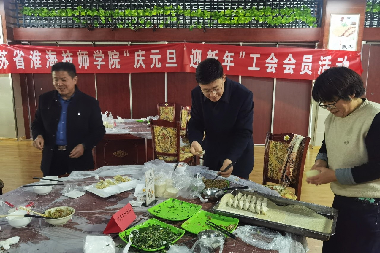 上午,工会的同志们提前在食堂准备好专属于“美食创作者”的秀场。桌子上,面粉比年关的初雪更早洒落,教师们个个摩拳擦掌,在“舞台”上挥洒劳动的艺术,与平时满口“课题”“教研”的形象大相径庭。有些爱搞怪的,可能偶尔还包出一个小馄饨,或是一个“飞碟”,总之怎么尽兴怎么来。
