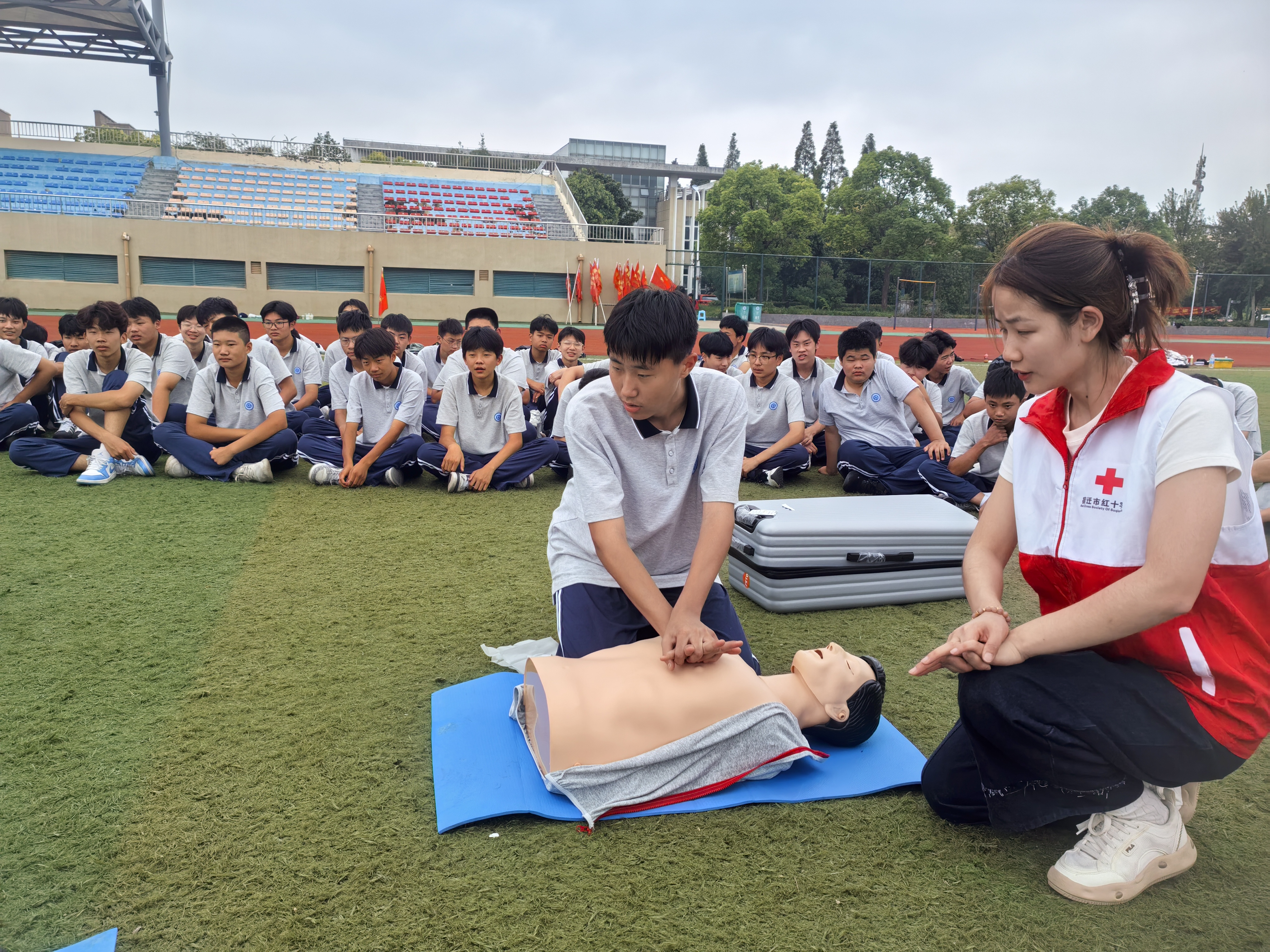 为筑牢新生军训安全屏障,提升应对突发事件和意外伤害的应急救护能力,9月23日,我院特邀宿迁市红十字会走进校园开展应急救护培训活动,2025级全体新生参加此次活动。