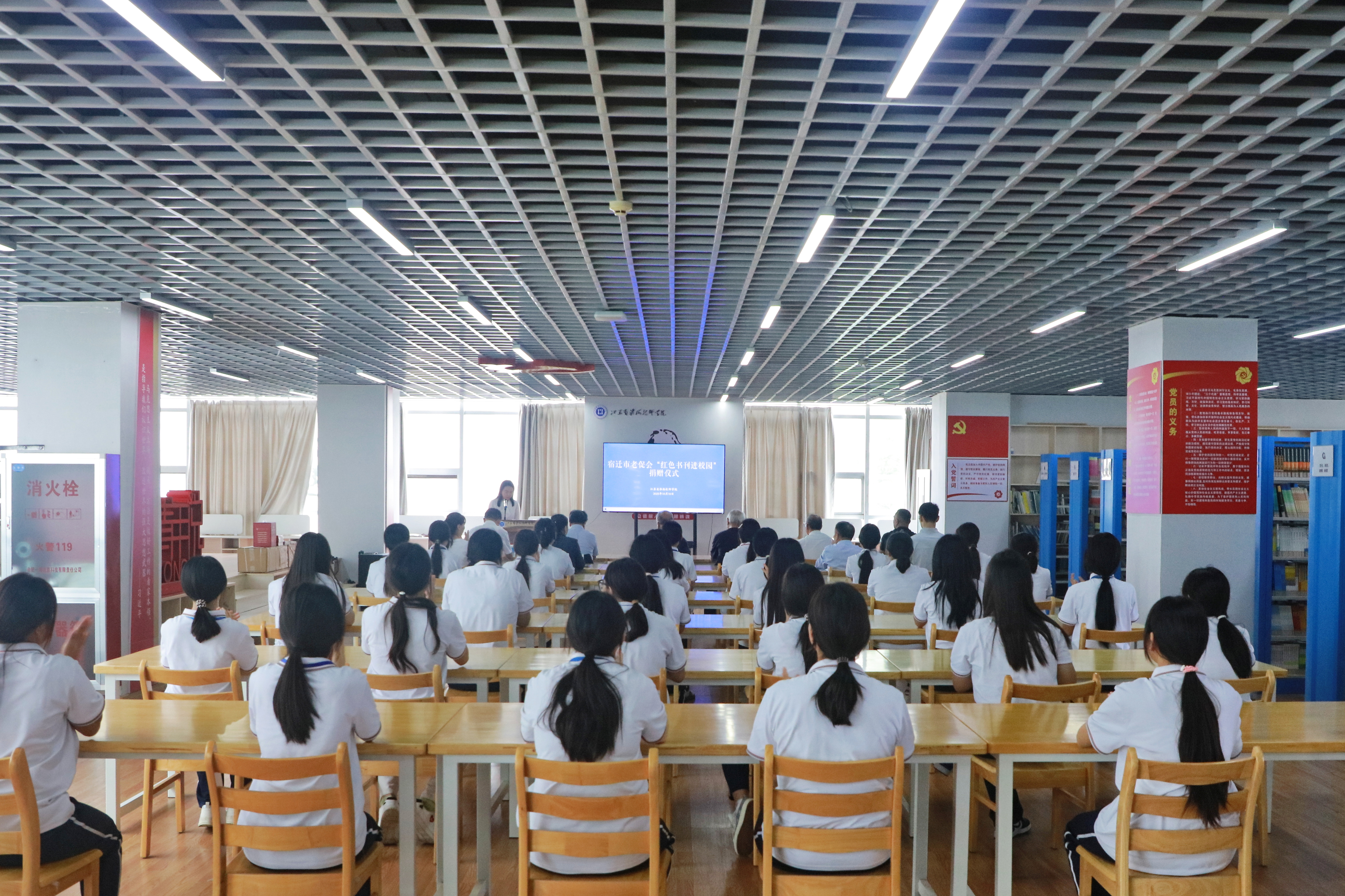 潘玉利介绍了宿迁市革命老区的发展史,给在场师生演绎了一场生动的“微思政课”。他表示,红色书刊是历史的见证,更是精神的火种,青年同学是未来产业报国的生力军,更是红色基因的传承者。他勉励大家,要从红色书刊中汲取精神养分,努力成为担当民族复兴大任的时代新人。