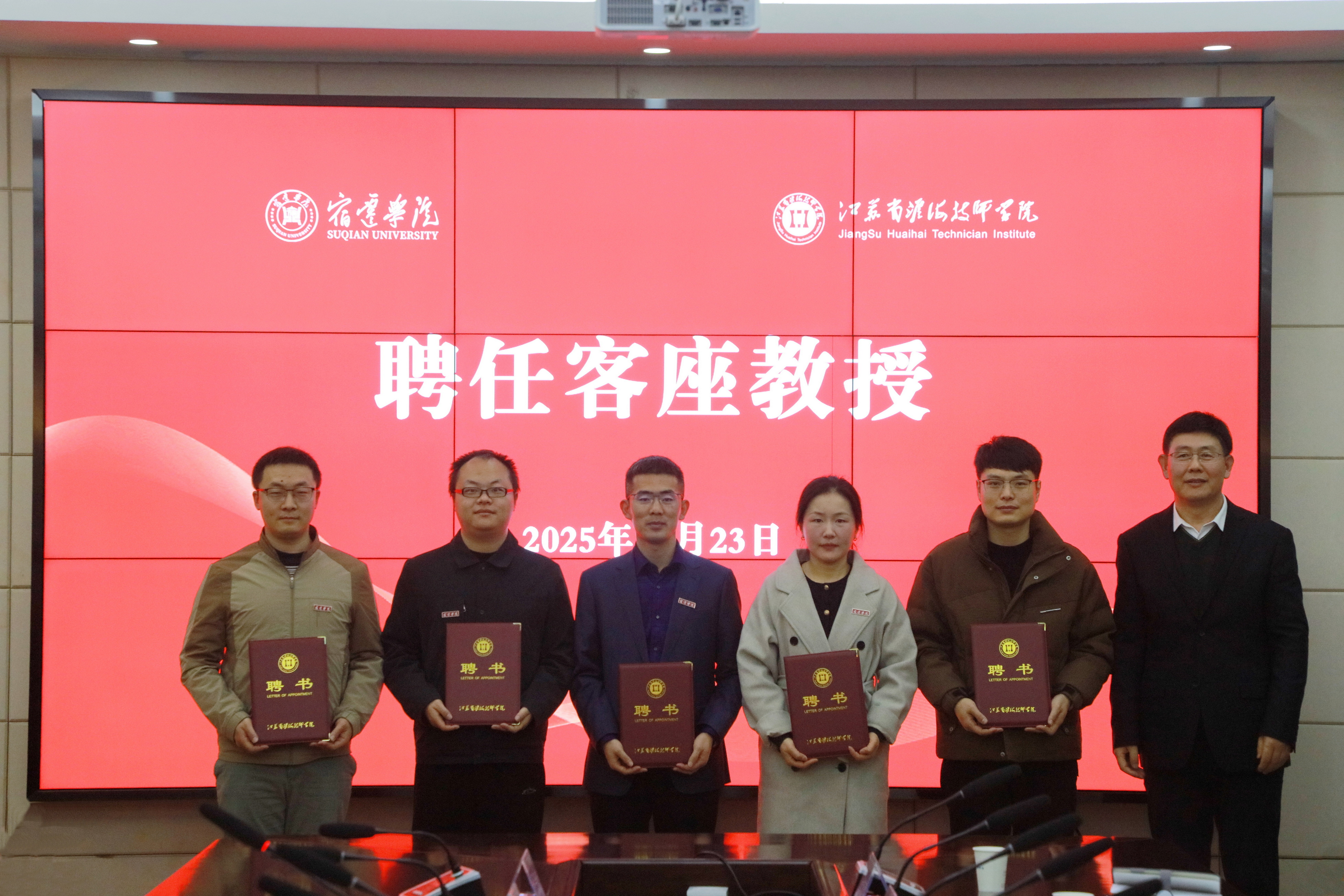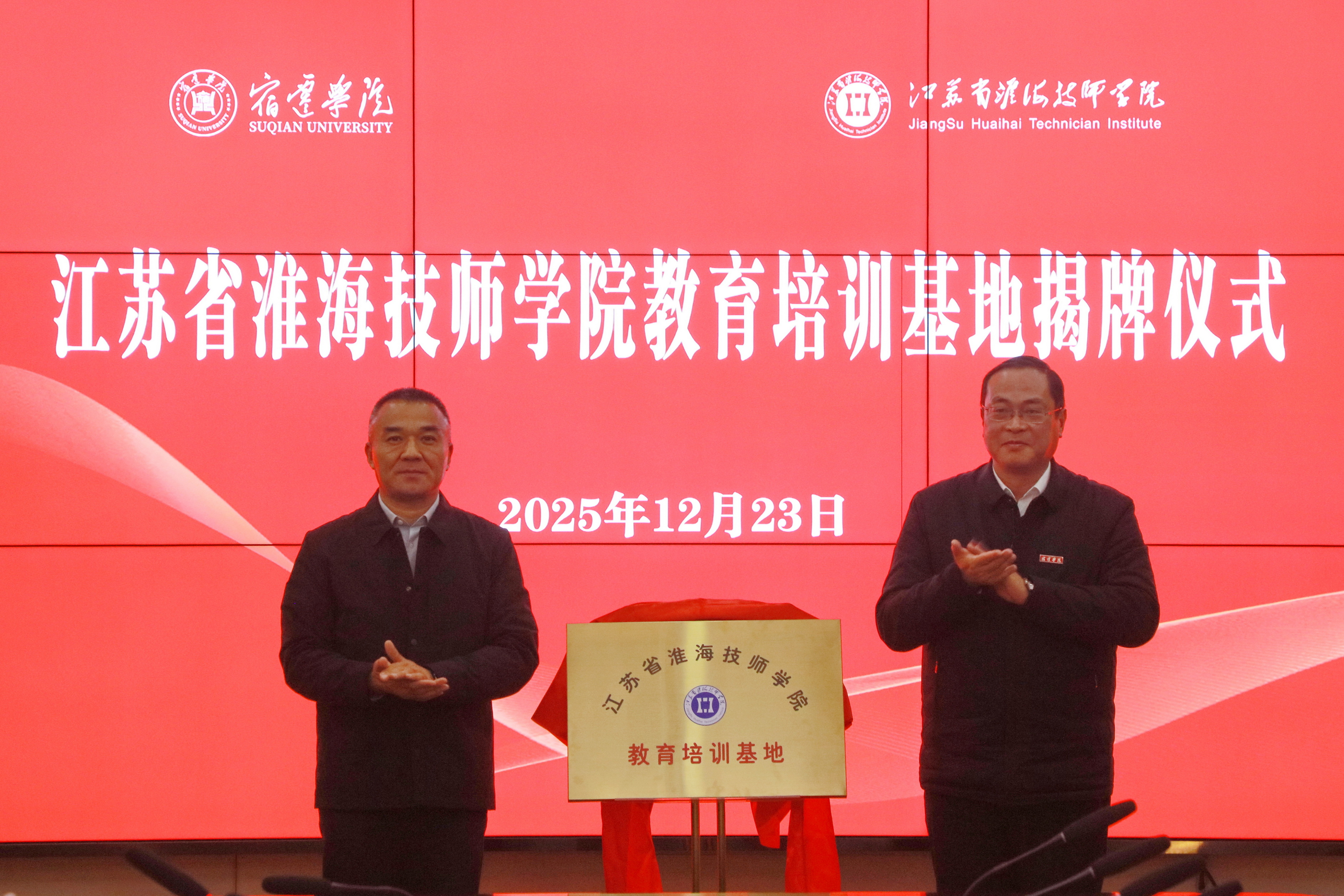 签约仪式上,双方共同签署了《战略合作协议》,并为宿迁学院受聘教师代表颁发了聘书。同时,“江苏省淮海技师学院教育培训基地”和“宿迁学院实践教学基地”正式揭牌,标志着两校资源互通、协同育人进入实质运行阶段。接下来,双方将构建“师资共享+职业培训+学历提升+实习实训+竞赛培育+科研协作”的全链条合作体系,通过深化“学历+技能”贯通培养、实习实训基地互用、技能竞赛共训及产学研平台共建等核心领域的协同,以“理论+实践”双向赋能,共同培养适应产业升级的高素质复合型技术技能人才。